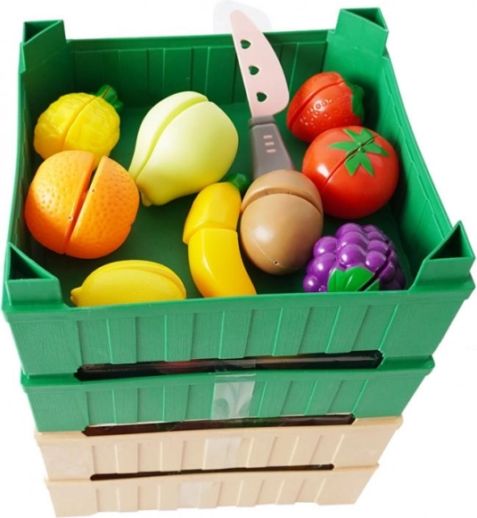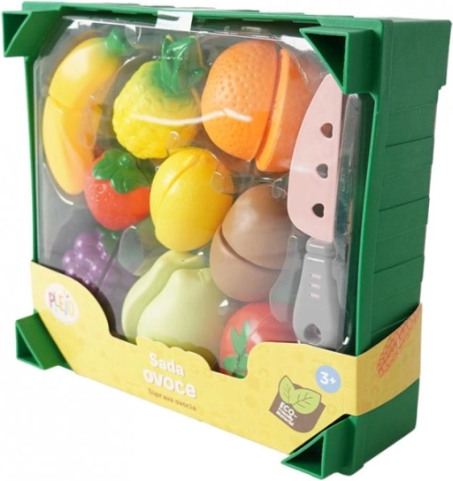 Подарете на децата си радост от играта с този Plejo комплект плодове. Всеки плод е оборудван с велкро, което позволява лесното му „разрязване“ с включения пластмасов нож. Касетката, която може да се подрежда една върху друга, гарантира лесно прибиране и креативно подреждане. Комплектът съдържа общо 19 части, което осигурява достатъчно възможности за въображаема игра.