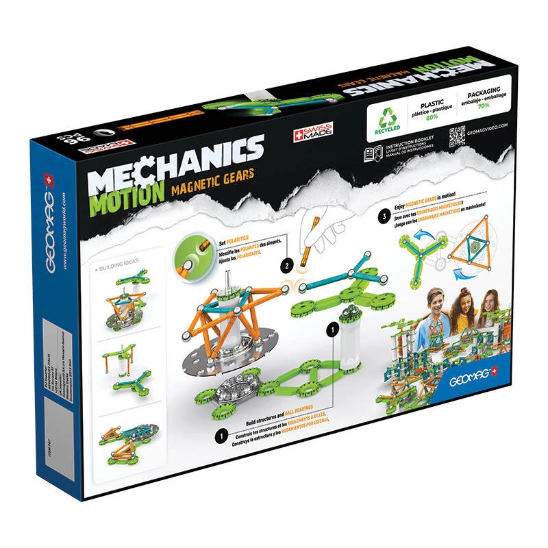 GEOMAG Mechanics Motion Magnetic Gears предлага на децата интуитивен начин да разберат въртеливото движение, магнитните сили и предавателните механизми. С помощта на магнитни пръчки, сфери и зъбни елементи лесно ще построите динамични конструкции, които наистина се движат. Играта насърчава експериментирането, решаването на проблеми и мисленето в взаимовръзки.