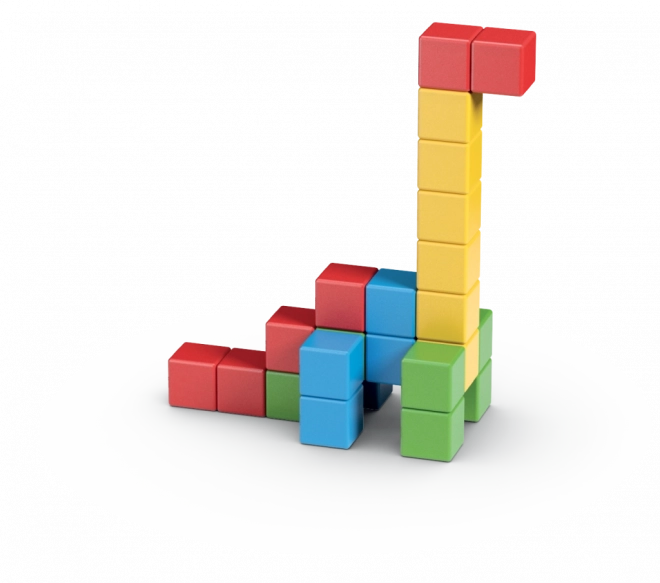 - 24 кубчета в 4 цвята – пъстри комбинации и безкрайни възможности