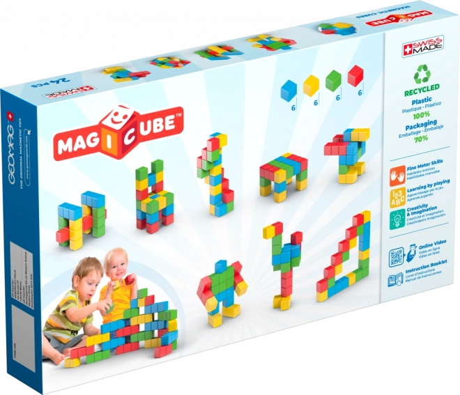 Открийте креативния свят с магнитната конструкторска играчка Geomag Magicube Creative. Благодарение на специалната конструкция, кубчетата се привличат от всичките шест страни и позволяват строене в 3D и свободно в пространството. Комплектът съдържа 24 цветни кубчета и е подходящ още от 1 година – идеален за развитие на въображението, фината моторика и координацията.