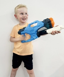 Удобен захват, здрав пластмасов корпус и футуристична визия за надеждно и стилно водно забавление.