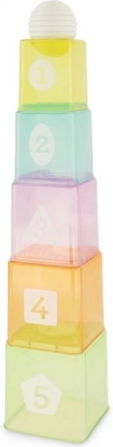 Комплектът Infantino подреждащи се чашки с топче е идеален за първите открития на форми, цветове и числа. Прозрачните чашки с четливи числа могат да се подреждат от най-малката към най-голямата и да се строят стабилни кули, което развива фината моторика и пространственото възприятие.