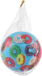 Пъстра топка за игра с мотиви на понички, кексчета и сладолед с диаметър 14 см ще зарадва децата от 3 години у дома, на площадката и край водата. Има гладка повърхност за лесно търкаляне и хвърляне и е изработена от издръжлива гума. Лека, цветна и забавна топка подпомага активното движение и координацията. Идеална за игри на открито и на закрито.