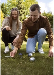 Петанк е социална игра, подходяща за семейства и приятели. Можете да играете почти навсякъде върху равна повърхност – от градината и парка до плажа.