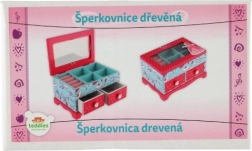 Тази стилна дървена кутия за бижута съчетава привлекателна визия и функционално разпределение. Горният капак с огледалце се повдига лесно и разкрива добре обмислени отделения за пръстени, обеци и дребни аксесоари. Двете самостоятелни чекмеджета осигуряват допълнително място за подредено съхранение на съкровища.