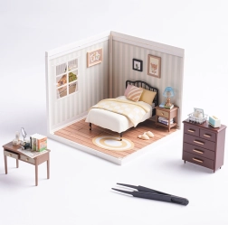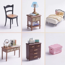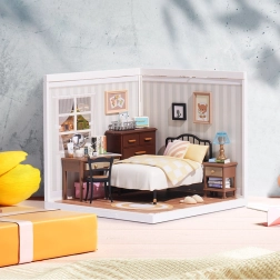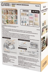 Открийте магията на миниатюрите със спалнята Sweet Dream, където естествените дървени тонове и кремаво-жълтите детайли създават топла атмосфера. Комплектът включва легло, нощно шкафче с лампа, тоалетка с въртящо се огледалце, скрин и дребни декорации. Благодарение на LED осветлението всички детайли изпъкват и моделът се превръща във впечатляваща декорация.