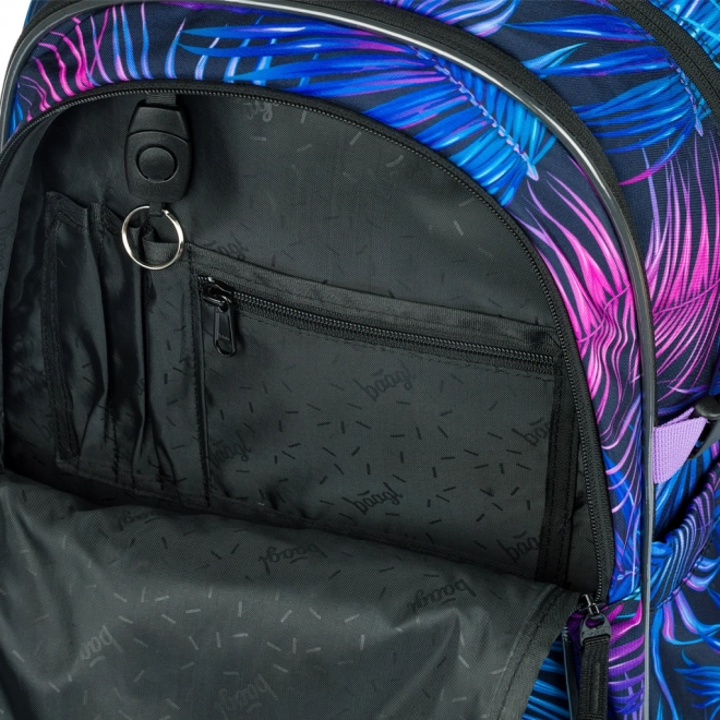 BAAGL Core Palm е проектирана да улесни всеки учебен ден на децата. Ергономично оформеният гръб, напълно регулируемите раменни, гръдни и странични компресионни колани осигуряват стабилно и здравословно носене. В трите отделно затварящи се отделения се побира всичко необходимо; практичният органайзер и отделният джоб побират безопасно и 15'' лаптоп или таблет. Страничните твърди джобове са идеални за бутилка и дребни предмети.