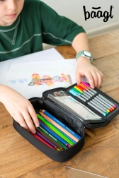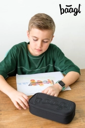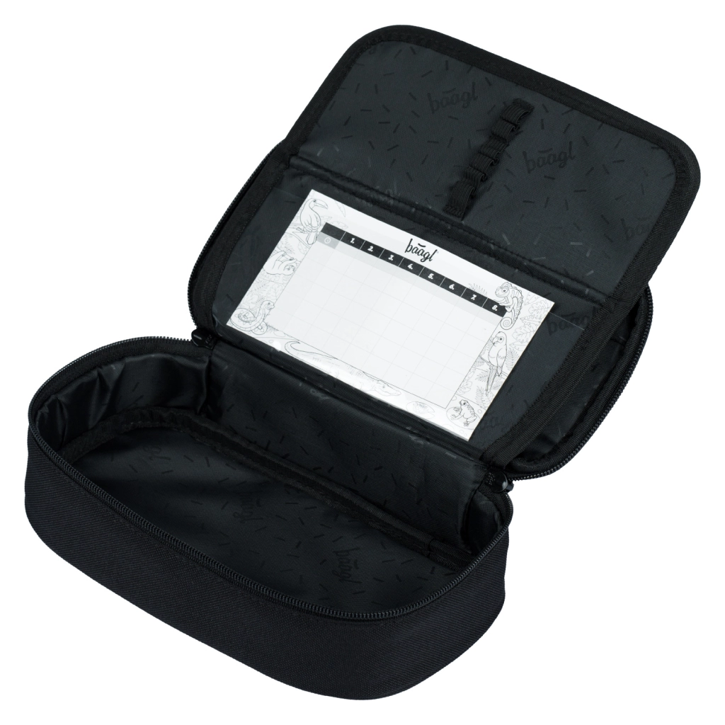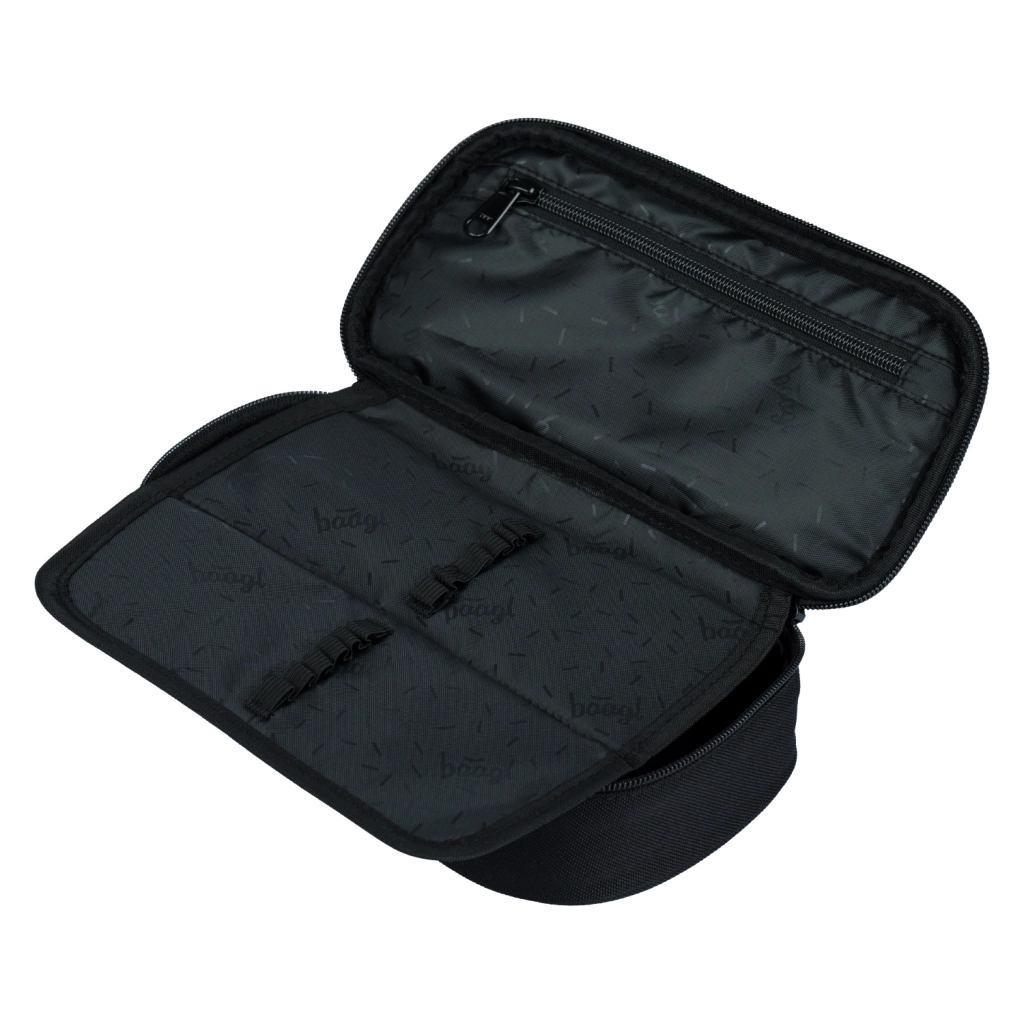 Търсите надежден и елегантен несесер, който да поддържа всичко подредено и на мястото си? BAAGL Darkness комбинира минималистичен дизайн с добре обмислено вътрешно разпределение. Сгъваща се преграда, еластични държачи и джоб с цип се грижат за реда в моливите, химикалките и дребните аксесоари. Прозрачният джоб за разписание помага по-добре да планирате учебния ден.