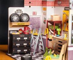 Миниатюрната гаражна сцена от Robotime предлага невероятна детайлност и качество на изработката. Доставя се в разглобено състояние с подробни инструкции, които ще ви преведат стъпка по стъпка през сглобяването.