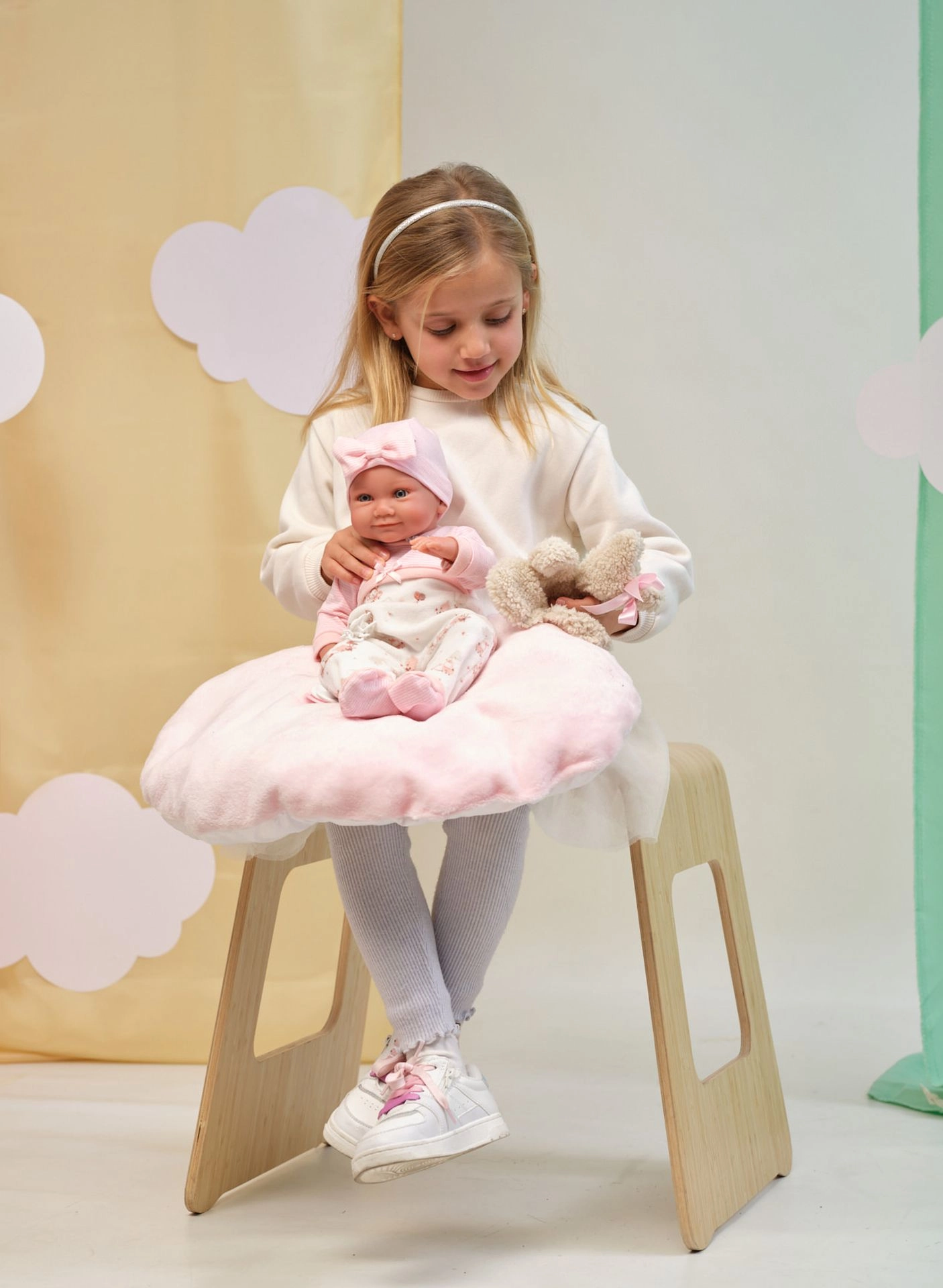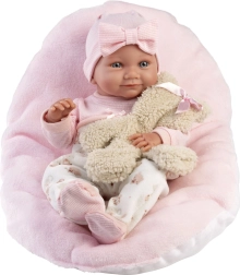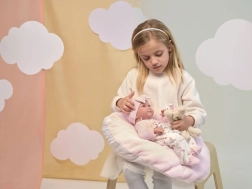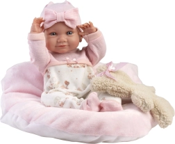 В комплекта са включени двучастен комплект дрехи и възглавничка, така че децата могат да играят на приспиване или преобличане. Куклата има подвижни ръце, крака и глава, което подпомага развитието на фината моторика и креативната игра. Идеална като подарък за малки грижещи се и колекционерки на кукли.