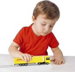 Този камион е детайлно изработен, за да наподоби възможно най-вярно истинско доставчно превозно средство на DHL, включително характерния жълт цвят и логото.