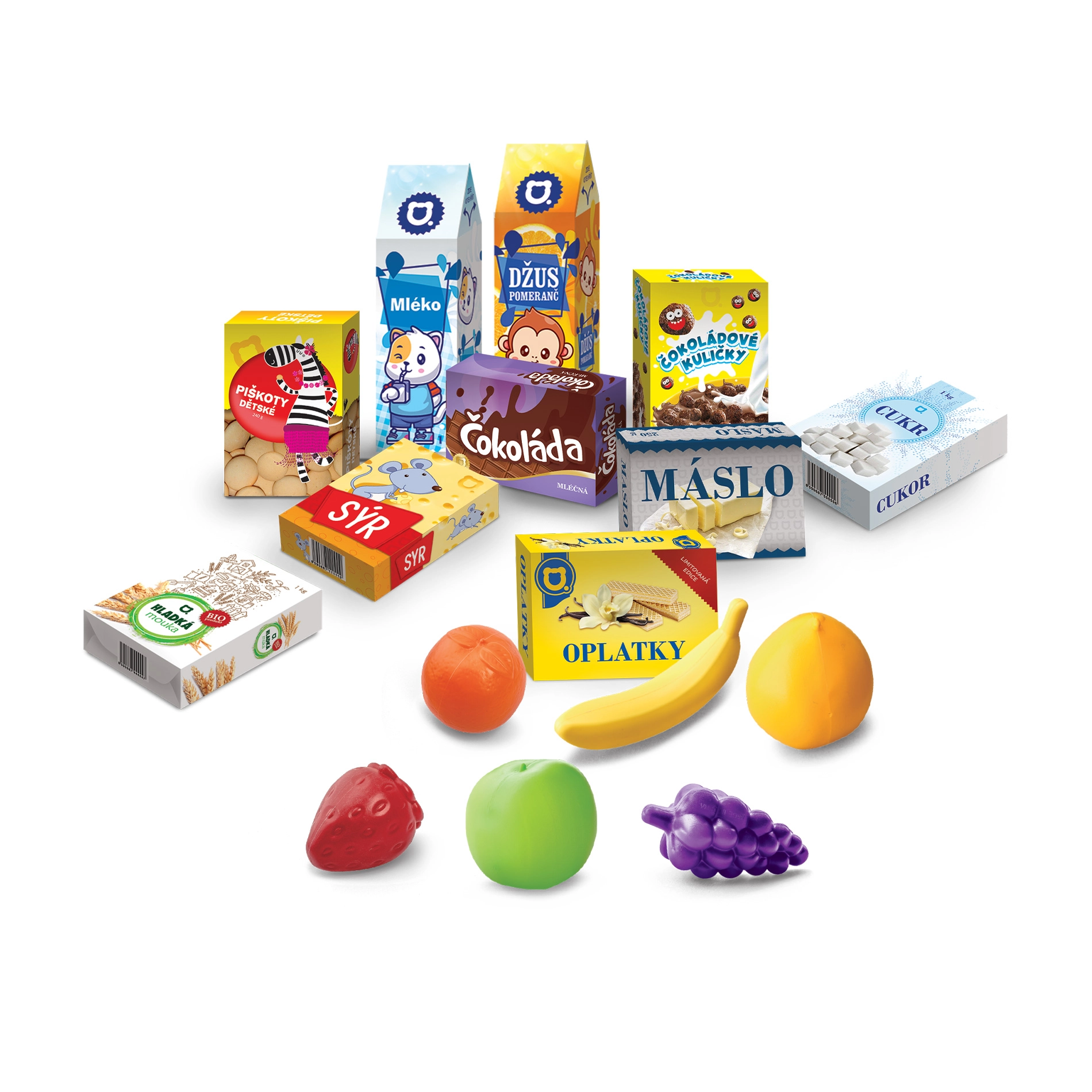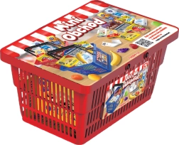 Играта на магазин е любимо детско забавление. С тази кошница децата ще се забавляват много и едновременно с това ще развият своето въображение. Кошницата съдържа 10 бр. хартиени макети на храни и 6 бр. плодове. Освен това има лист с задачи и ценоразпис за допълнително учене и забавление.