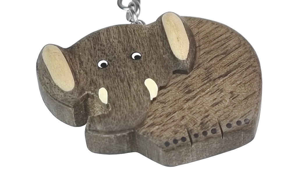Този голям дървен ключодържател във форма на слон е идеален подарък за всички любители на природата и животните. Ръчно изработен от пет вида дърво, закачете го към ключовете или чантата си и носете частица природа винаги със себе си.