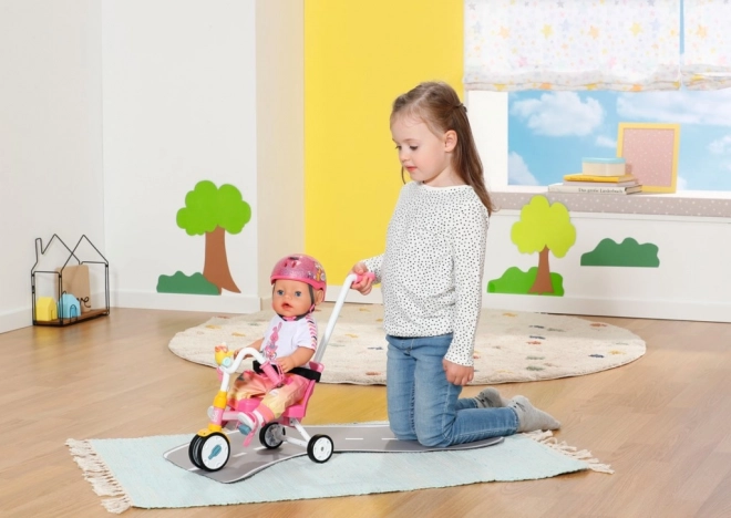 Отлично забавление и безопасност за вашето дете с детската триколка BABY born. Тази триколка предлага забавно и безопасно каране с подвижна водеща щанга и предпазни колани.