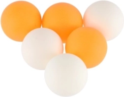 Тези топчета за тенис на маса са идеален избор за начинаещи и любители. Изработени от издръжлива ABS пластмаса, осигуряват дълъг живот и надеждна работа при всяка игра. Комплектът включва шест топчета – три оранжеви и три бели, което гарантира разнообразие по време на игра.
