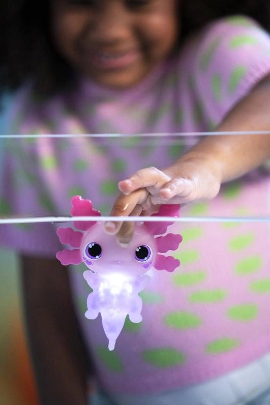 Розовият светещ аксолотъл ANIMAGIC превръща къпането в цветно изживяване. При контакт с вода се активира нежна светлина, която привлича вниманието на децата и стимулира тяхното въображение. Благодарение на мекото и еластично тяло играчката е приятна за стискане и манипулиране, като подпомага развитието на фината моторика и сензорното възприятие.