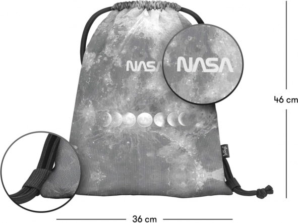 Издръжлив, миещ се материал с мотив NASA. Стягане с помощта на здрави връзки позволява и удобно носене на гръб – идеално за свободното време.
