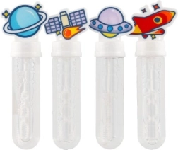 Открийте забавлението със сапунени мехурчета, които децата обожават. Тези бълбългачки носят часове игри благодарение на уникалните космически мотиви на капачките. Незаменими за всяко детско парти или игра навън!