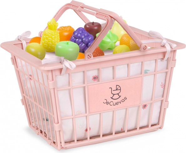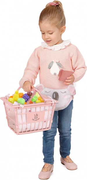 Тази розова детска пазарска количка е чудесна за игра на магазин и развива въображението, социалните умения и фината моторика. Съчетава просторна подвижна количка със седалка за кукла и отделяща се ръчна кошница с текстилен кант. Включени са 12 цветни плода за реалистична игра.