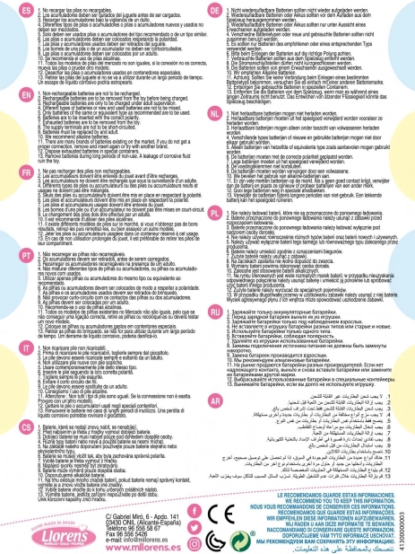 В комплекта са включени 3 батерии тип копче LR44, необходими за звуковите функции. Включена е и лесна инструкция за смяна на батериите.