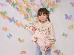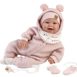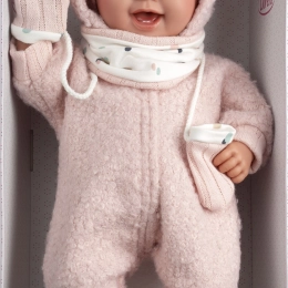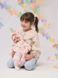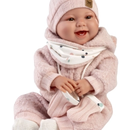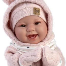 Реалистичната кукла LLORENS NEW BORN ще зарадва всяко дете с нежното си изражение и приятно мекото телце. При натискане на гръдчето се чуват смях и думите „мама“, „тате“, което насърчава въображението и грижовните умения. Ръцете и краката са закрепени със стави, така че куклата е позиционираща се и лесно може да бъде поставена седнала.