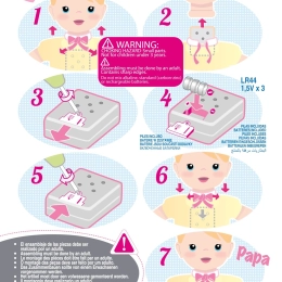 При натискане на гръдчето куклата се смее и казва „мама“, „тате“, което подпомага развитието на емпатия и грижовна игра.