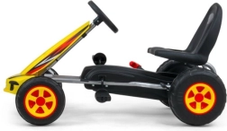 Педалният карт Milly Mally Viper е създаден за малки състезатели, които обичат бързото каране и безопасното забавление навън. Стоманената рамка с подсилващи подпори, ергономичната форма и реалистичната спортна визия правят този модел идеален избор за ежедневни разходки.