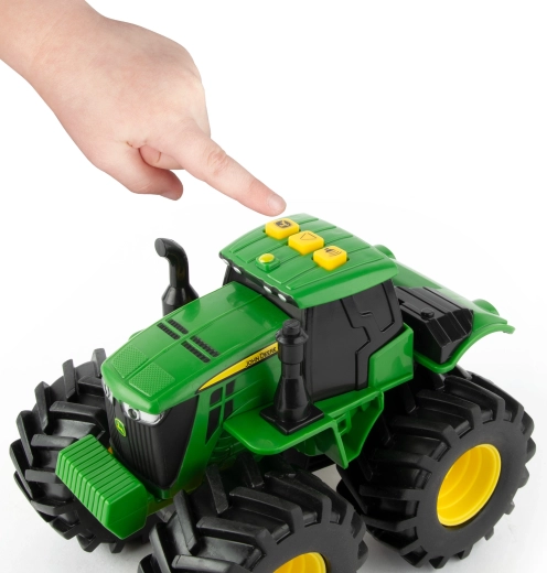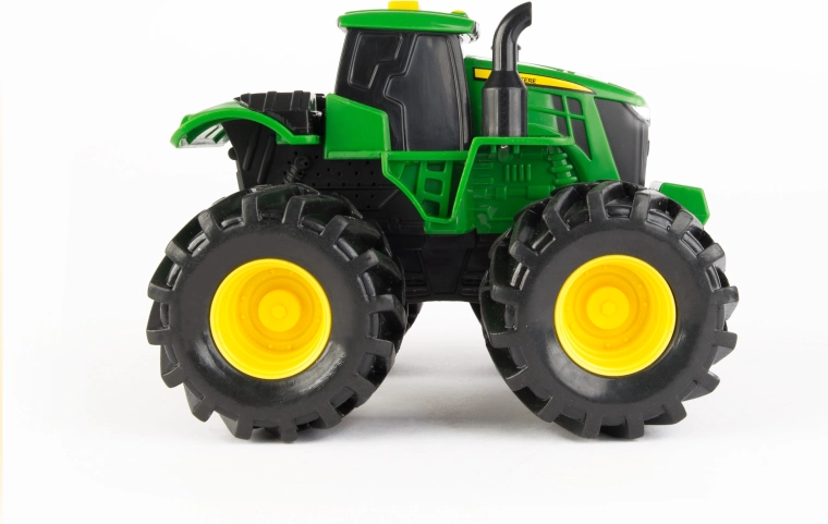 Популярният трактор Monster Treads впечатлява децата с реалистичния си външен вид и издръжлива конструкция. Големите, дълбоко грайферирани колела се справят с „терена“ в детската стая, а светлините и звуците създават правилната атмосфера за игра на ферма.