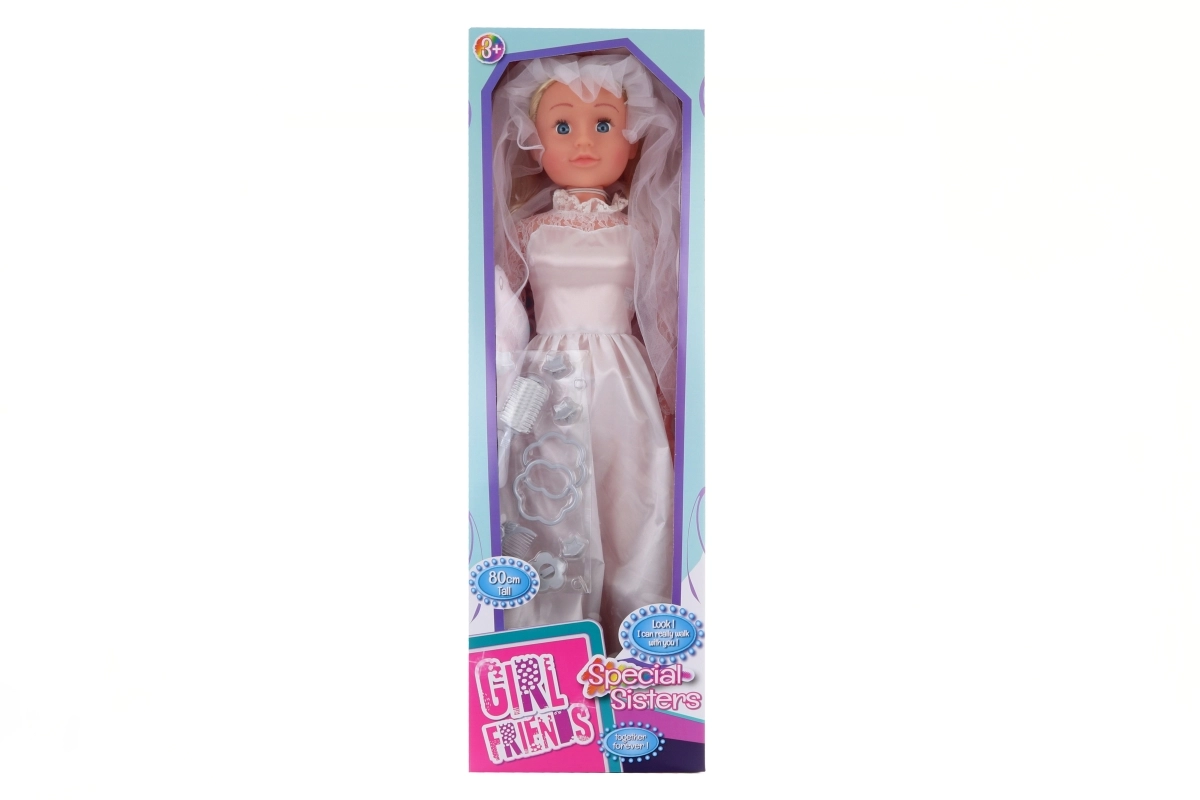 Голяма ходеща кукла в стил булка ще зарадва всяка малка принцеса. Има подвижни крака и ръце, така че децата могат наистина да ходят с нея. Благодарение на височината 80 см изглежда реалистично и ще се превърне в обичана приятелка за игра и развитие на фантазията.