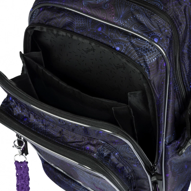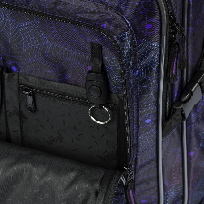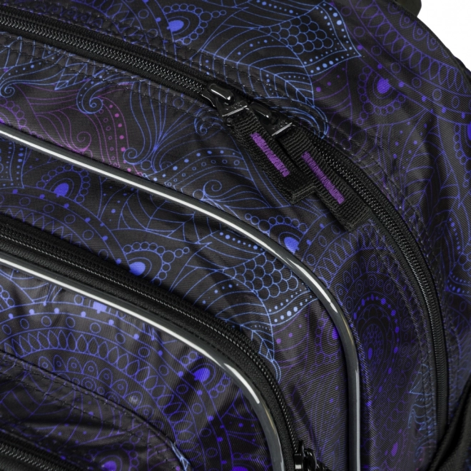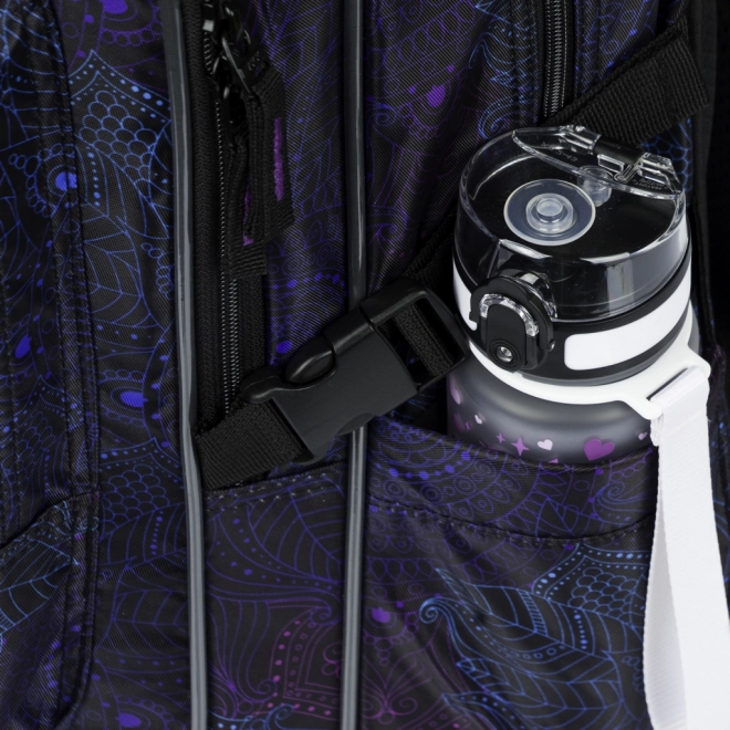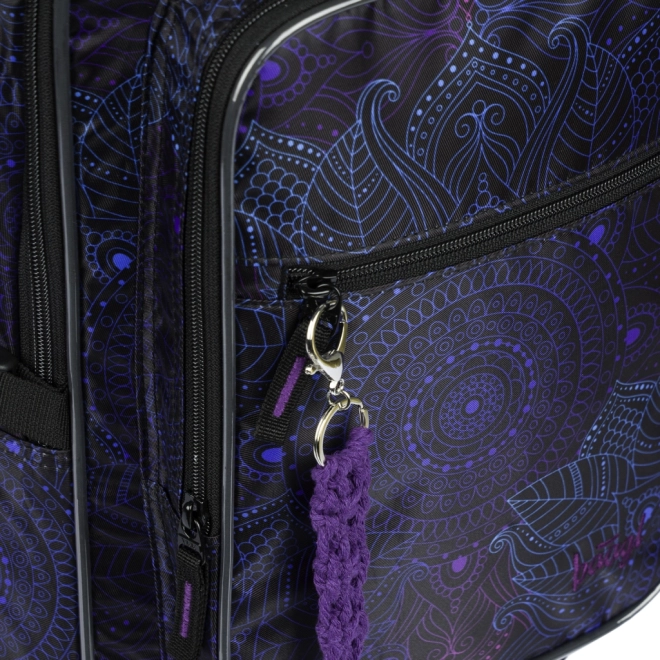 Дизайнът с елегантни лилаво-черни мотиви е допълнен от модерна висулка. Раницата предлага обем 29 l, товароносимост 7 kg и е тествана и сертифицирана в акредитирана изпитвателна лаборатория, покривайки изискванията за качество и безопасност.