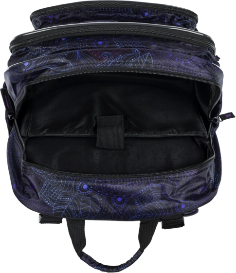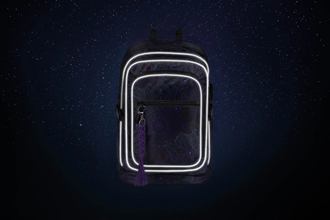 Трите отделни отделения с вътрешен органайзер позволяват прегледно съхранение на учебните пособия и равномерно разпределение на тежестта. Вътрешният подплатен джоб побира безопасно до 15" лаптоп или таблет. Предното отделение с практичен органайзер и подвижна карабинка за ключове повишава удобството в ежедневието. Налични са подсилен таен джоб на дъното, странични джобове за бутилка и богати светлоотразителни елементи за по-добра видимост.