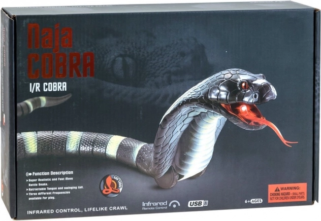 Впечатлете с реалистично змийско движение и забавно управление. Тази дистанционно управляема кобра се плъзга плавно благодарение на сегментираното си тяло, има изразен език и достоверна текстура на люспите. Благодарение на компактните размери е идеална за домашни игри и ефектни изненади.