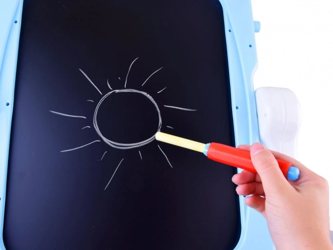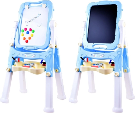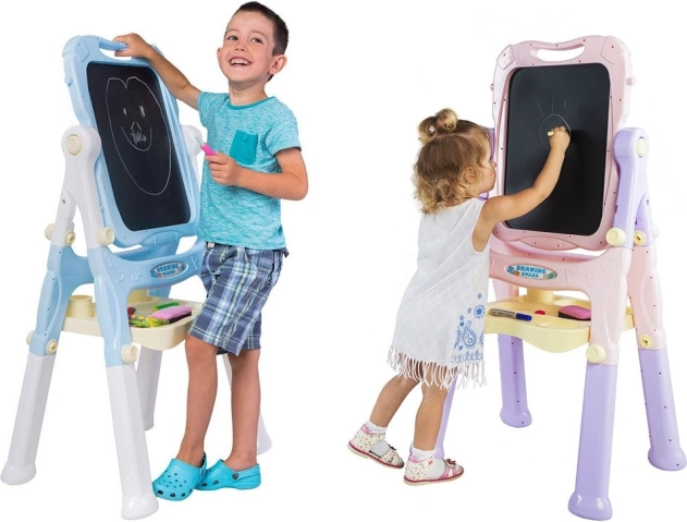 Детска двустранна магнитна и тебеширена рисувателна табла на стойка