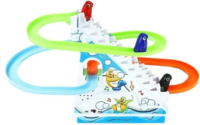 Пингвинчетата се плъзгат по пистата, докато звучи весела мелодия, което осигурява часове радост и забавление за малките деца.