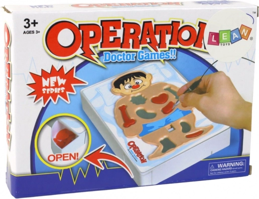 Популярна семейна игра, в която се превръщате в малки хирурзи. Изберете засегнат орган и се опитайте да го извадите с пинсета, без да се включи алармата. Всеки прецизен ход се брои и тренира сръчността и търпението на децата.