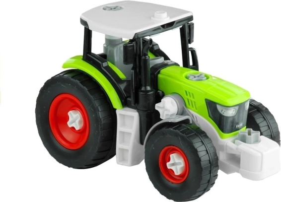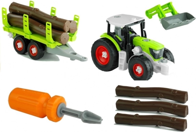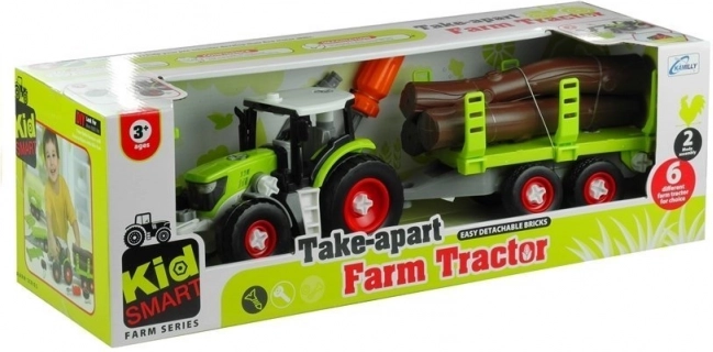 Разглобяемият трактор с ремарке помага за развиване на моторни умения, креативност и самостоятелност у децата. Завинтването и демонтажът на отделните части подпомагат логическото мислене и самоувереността. Изработено от пластмаса за дълъг живот на играчката. Тракторът с ремарке има въртящи се гумени колела, които осигуряват реалистично движение.
