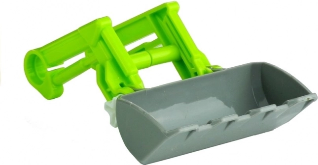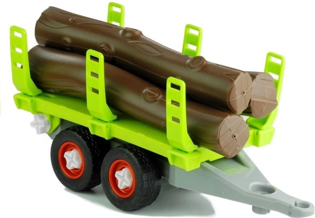 Играчката включва трактор, ремарке, дървени трупи и копаещо рамо, всичко изработено от издръжлива пластмаса.