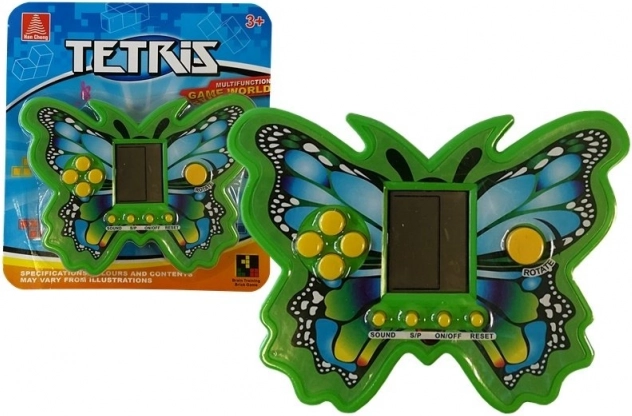 Електронната игра Тетрис във форма на пеперуда носи непреходно забавление в компактно и издръжливо изпълнение. Завъртайте и подреждайте падащите елементи така, че да попълвате цели редове и да събирате възможно най-много точки. С всяка премахната линия скоростта се увеличава и играта става по-напрегната.