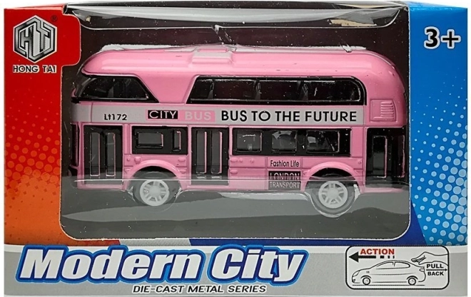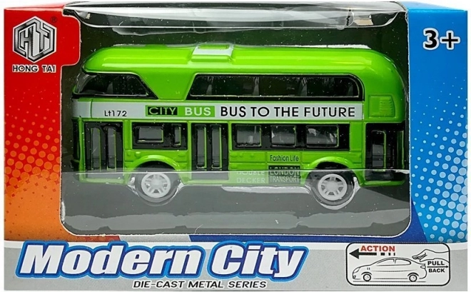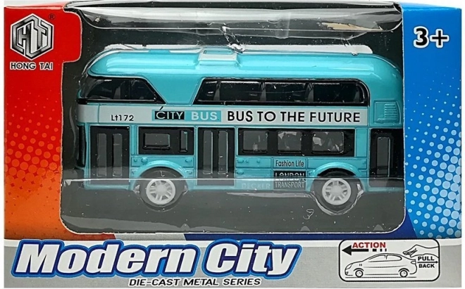 Благодарение на навиващия (pull-back) механизъм е достатъчно да плъзнете модела назад по повърхността и автобусът сам потегля. Издръжливата изработка е проектирана за честа игра, за да могат децата без притеснения да се надпреварват, да симулират градски транспорт или да изграждат свой собствен транспортен свят.