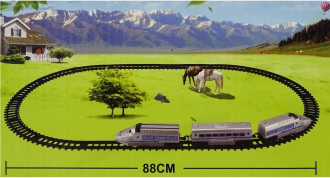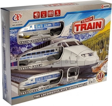 Този невероятен влаков комплект е идеален за малки машинисти, които искат да се насладят на уникално изживяване при управление на влак. Комплектът съдържа влак с два допълнителни вагона, които се закрепват лесно с помощта на прости щракващи съединения. Пътят се състои от два прави и дванадесет полукръгови релси.