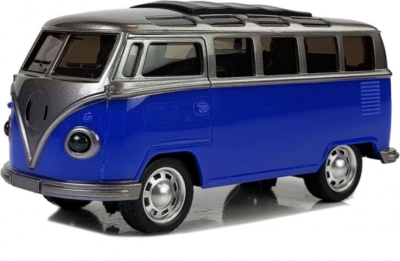 Популярният ретро автобус в син цвят е перфектен подарък за малките любители на транспорта и носталгичните възрастни. Реалистичните детайли, гумените гуми и здравото пластмасово тяло гарантират дълги часове безопасно забавление. Благодарение на фрикционния механизъм е достатъчно да дръпнете автобуса назад и да го пуснете – той ще потегли сам.