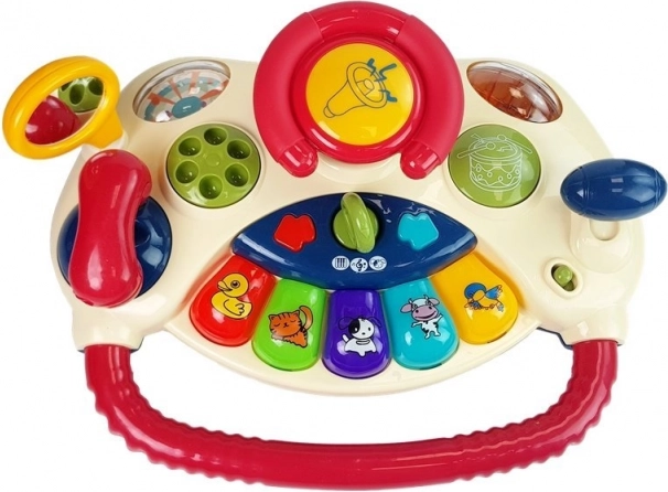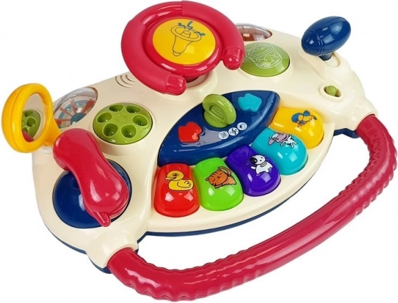 Играчката е оборудвана с лост за предавки от дясната страна и регулируемо огледалце от лявата страна, перфектно пригодени за малките детски ръчички. Голямо предимство за родителите е тихата работа и здравата изработка, които гарантират дълги часове игра. Интерактивният волан предлага също телефон и пиано с три режима, което допълнително повишава образователната стойност на играчката.