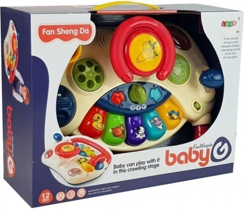 Насладете се на часове забавление с този интерактивен волан, който въвежда децата в света на цветовете, звуците и формите. Децата могат да изследват чрез цветните бутони, които активират светлини и звуци, което значително подпомага развитието на моторните умения и разбирането на заобикалящия свят.