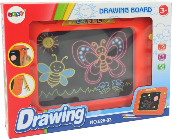 Тази вълшебна светеща дъска е чудесна играчка за всички креативни деца. С нейния уникален кристално ясен дисплей рисунките оживяват с множество светлинни ефекти. Просто натиснете бутона и гледайте как изкуството ви засиява.