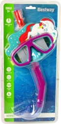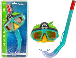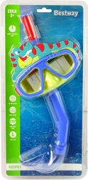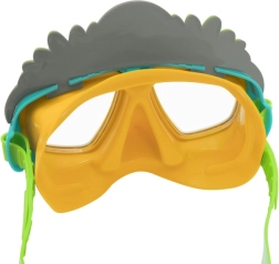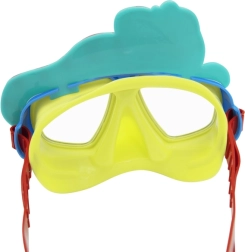 Маската има еластичен, лесно регулируем ремък за сигурно закрепване на главата и добро уплътнение около очите, за да се минимизира проникването на вода. Комплектът е подходящ за начинаещи малки плувци от 3 години и е идеален както за басейн, така и за спокойни морски води.