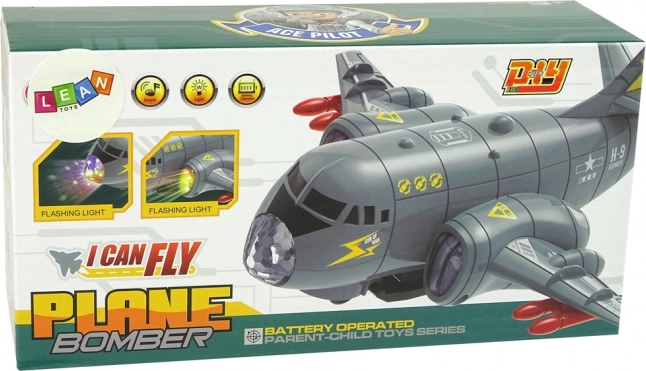 Бомбардировачът е оборудван със светодиоди и издава автентични звуци на авиационна техника, което добавя реализъм към играта.