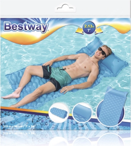 Насладете се на лятото с удобния надуваем дюшек BESTWAY. Благодарение на компактния ролков дизайн лесно ще го вземете на плажа, до езерото или до домашния басейн. Еластичната повърхност и вграденият възглавник осигуряват приятна опора на тялото, а двукамерната изработка – стабилност върху водната повърхност.