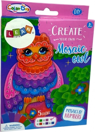 Започнете да творите с този творчески комплект и запълнете предварително отпечатаното изображение на сова с цветни квадратчета. Нужно е само удобно място и забавлението може да започне. Готовата мозайка прекрасно ще допълни детската стая и ще донесе радост от собственото творчество.