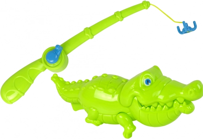Включва въдица с макара, 6 малки рибки, 3 големи риби и игрив крокодил.