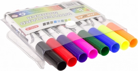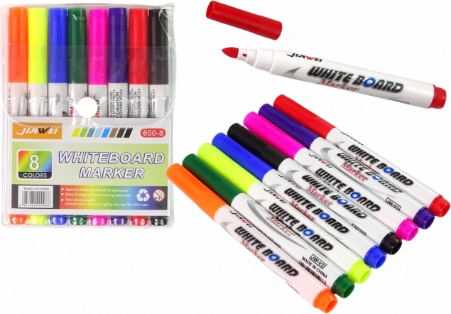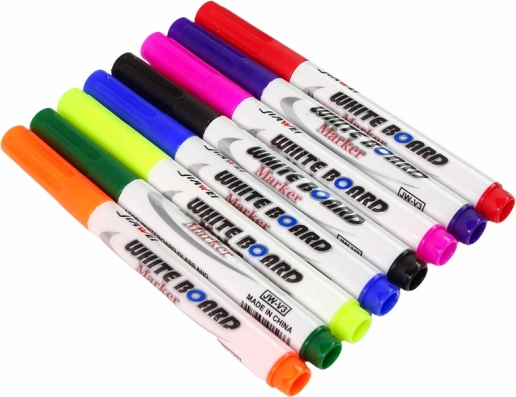 Комплектът съдържа 8 наситени цвята, които стимулират детската креативност и подпомагат представянето ви в училище или офис. Маркерите се изтриват лесно от бели дъски и гладки повърхности, така че почистването е въпрос на миг.